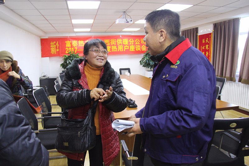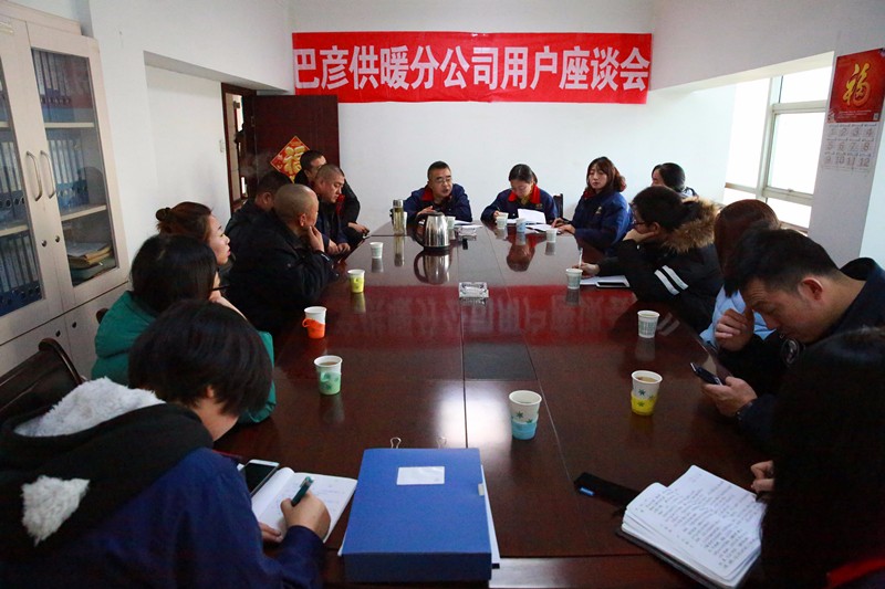 為了深入落實(shí)公司關(guān)于繼續(xù)開(kāi)展供熱服務(wù)進(jìn)社區(qū)活動(dòng)的部署和要求,12月7日,新華西街供暖分公司、巴彥淖爾北路供暖分公司財(cái)大供暖所分別召開(kāi)用戶代表座談會(huì)。分公司負(fù)責(zé)人面對(duì)面地與用戶代表進(jìn)行交流溝通,虛心聽(tīng)取他們的意見(jiàn)建議,現(xiàn)場(chǎng)回答了熱用戶提出的問(wèn)題。